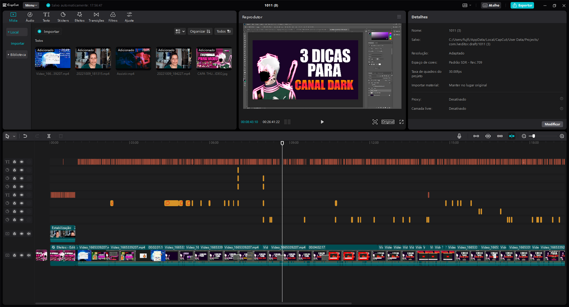 Editando vídeo com o melhor editor de video para mobile e computador.